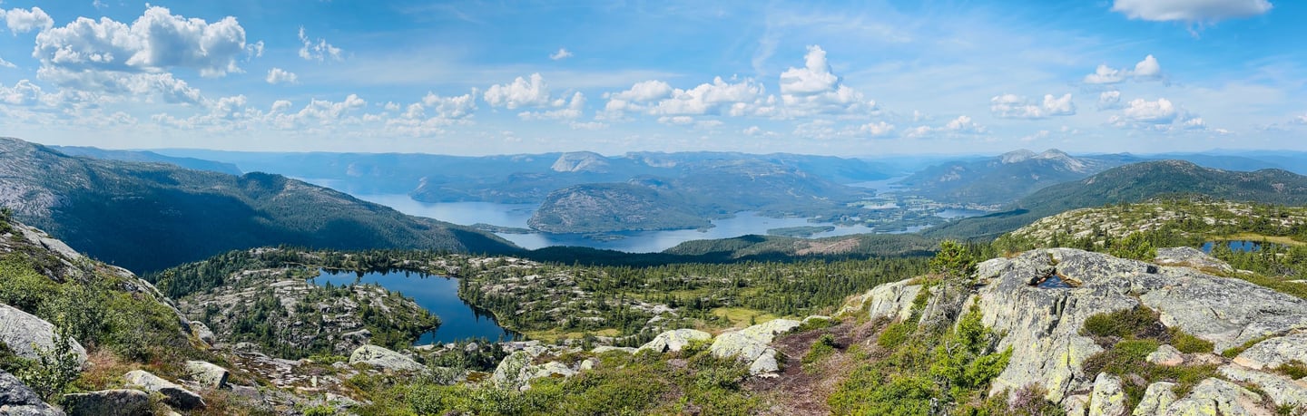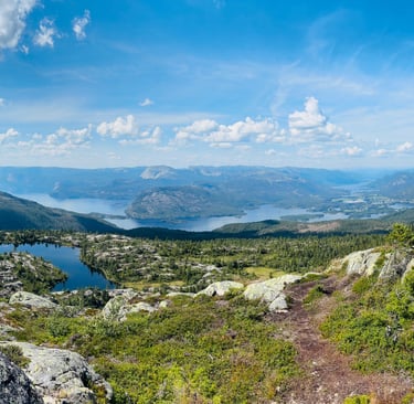 Nur wenige Autominuten vom Ferienhaus entfernt beginnt die beliebteste Wanderung der Region: der Aufstieg zum Skuggenatten. Der gut markierte Pfad führt durch lichten Wald hinauf zum Gipfel auf 706 m. Oben erwartet Sie ein spektakulärer Panoramablick über den Nisser See und die umliegenden Berge. Die Wanderung ist ca. 3 km lang (hin & zurück) und in 1,5–2 Stunden machbar – perfekt auch für Familien mit etwas Kondition.